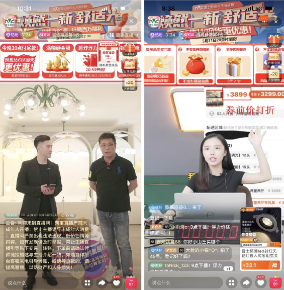 其中,作为照明行业做直播、建直播间很早的品牌,早在2019年“双11”, 雷士照明就建起了第一个直播间。如今在直播带货领域,雷士照明已进行了广泛布局,并在淘宝直播、抖音、快手等主流平台吸引了近1000万粉丝。雷士照明还对自己的直播形态和内容呈现进行了快速迭代和持续升级。从直播1.0时代的品牌展示和推广,到如今直播3.0阶段的全景直播间提供的沉浸式产品体验,雷士照明在直播中增添更多的用户体验和内容性,并作为一个销售渠道,实现了常态化运营。如今雷士照明的直播渠道,已经从线上店铺收割的辅助场,成为了流量的创造场。