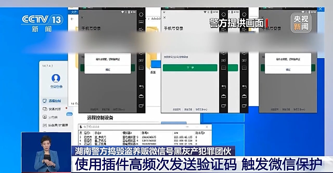 邱广华:嫌疑人会用一个叫“卡手机”的软件,当获取到受害人的微信号和登录密码以后,他会将这个账号和密码输入一个文档,然后这个文档会大量地发送干扰的、接收验证码的短信,致使受害人无法找回。