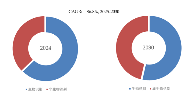 就产品类型而言,目前生物识别是最主要的细分产品,占据大约62.7%的份额。