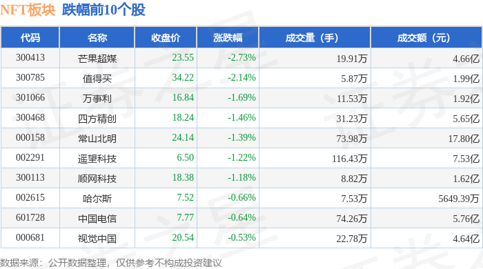 NFT板块5月19日跌001%芒果超媒领跌主力资金净流出