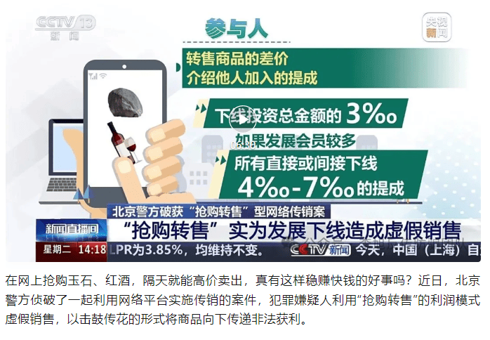 案例:网上抢购玉石、红酒后高价卖出?警惕新型传销!——北京警方侦破一起利用网络平台实施的传销案件