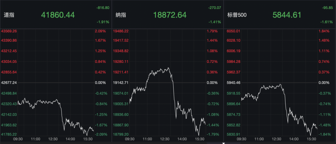美国科技巨头多数下跌,特斯拉跌2.68%、苹果跌2.31%、英伟达跌1.92%、亚马逊跌1.45%、微软跌1.22%、超微半导体跌1.28%;谷歌-A逆势涨2.79%。