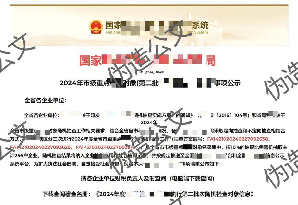 攻击者使用的钓鱼诱饵主题高度贴合我国社会和经济活动的周期性事件。结合第一季度特点,攻击者刻意强调“企业所得税”“第一季度”“税务稽查”“汇算清缴”“3·15曝光”“清明节放假”等关键词,甚至伪造政府部门通知(如下图所示),借此使潜在受害者增加紧迫感和好奇心从而放松警惕,进而下载和运行具有迷惑性的木马病毒文件。