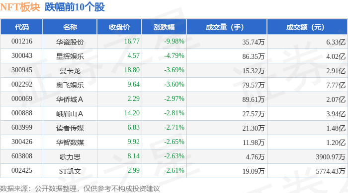 NFT板块7月31日跌027%华瓷股份领跌主力资金净流出