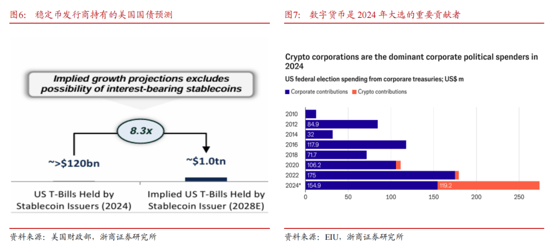 二是利好为特朗普大选助力的加密货币资金,2024年特朗普竞选过程中加密货币领域资金是重要金主。2024年加密货币在美国历史上第一次成为总统选举关键献款者。